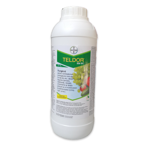 Teldor 500 SC este un fungicid cu actiune de contact si local sistemica pentru combaterea putregaiului cenusiu la vita de vie, legume, capsun, flori ornamentale si a moniliozelor la samburoase.